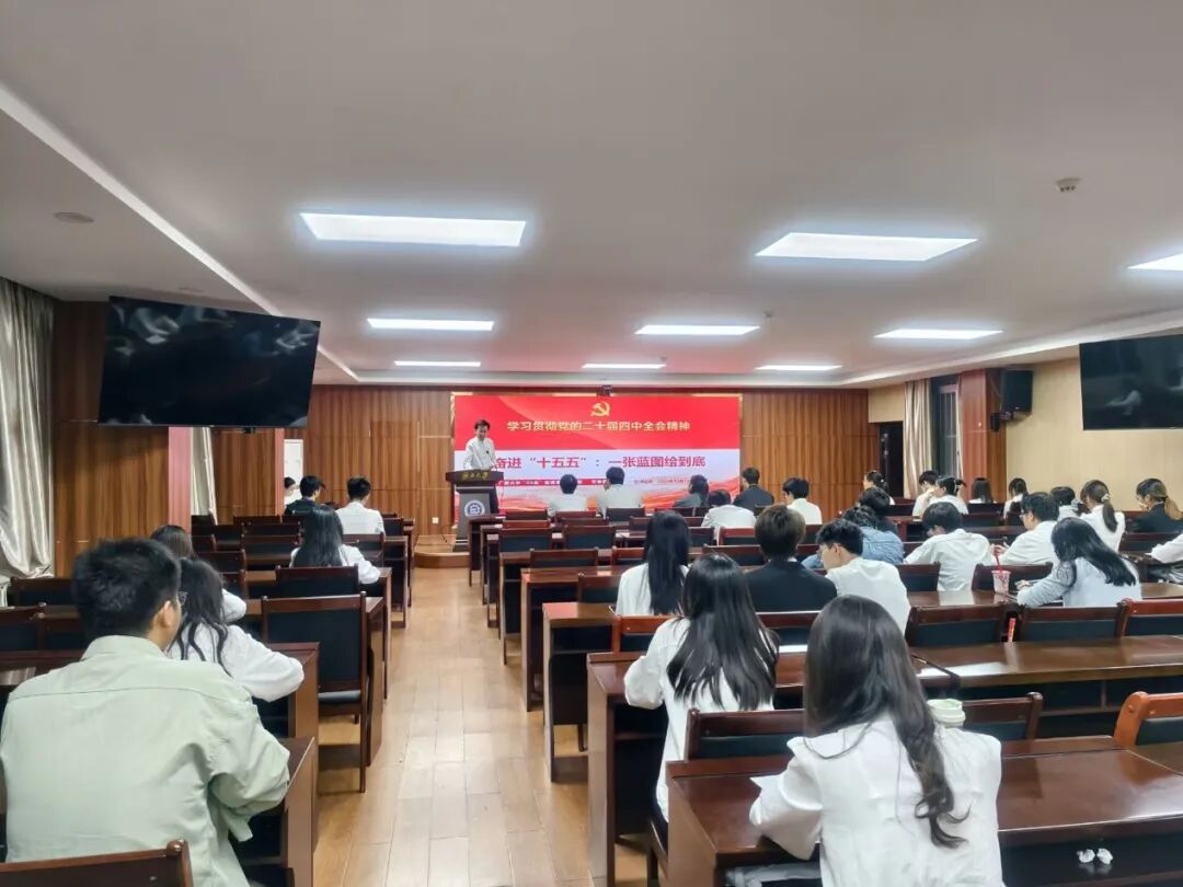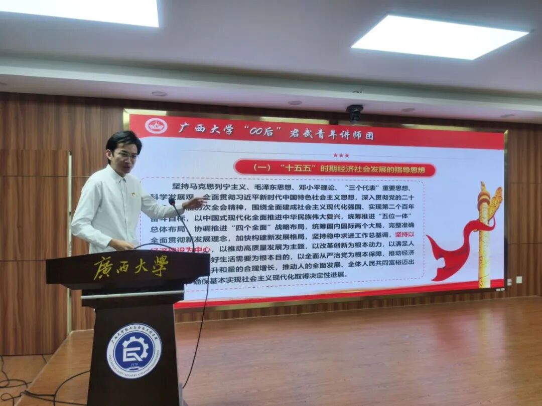 万李普照以《奋进“十五五”,一张蓝图绘到底》为题,结合“十五五”规划建议和党的二十届四中全会精神,从国家现代化建设布局、创新驱动发展战略、绿色与可持续发展方向以及民生改善与社会治理提升等多个维度,进行了系统宣讲。他结合轻工与食品专业领域,阐述了国家战略与青年使命的内在联系,引导同学们思考如何将专业知识运用于未来发展。他指出,青年发展与国家发展息息相关,“理解规划、参与时代”是新时代大学生成为优秀青年力量的重要路径。