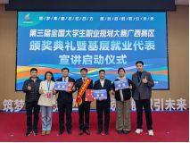 近日,第三届全国大学生职业规划大赛广西赛区现场决赛圆满落幕,我校在本次大赛上收获“2金1银”的佳绩。其中,我院轻工技术与工程专业2022级博士研究生刘涛凭借清晰的职业定位、扎实的专业积淀与出色的现场表现,在就业赛道研究生组的激烈角逐中脱颖而出,成功斩获金奖,充分展现了我院学子深耕学术、规划未来的青春风采,也彰显了学院在生涯教育与就业指导工作中的扎实成效。