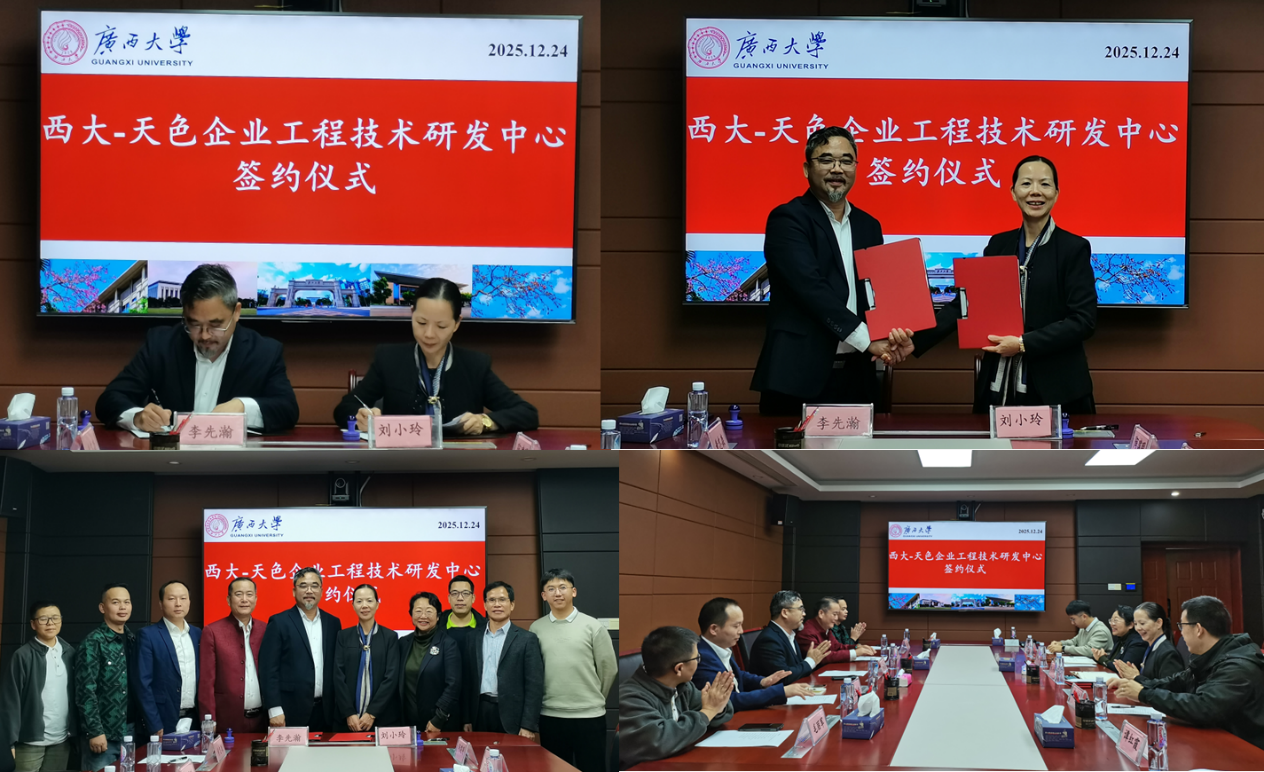 2025年12月24日下午,3044永利集团与广西天色食品科技有限公司在学院204会议室隆重举行“西大-天色企业工程技术研发中心”签约仪式。
