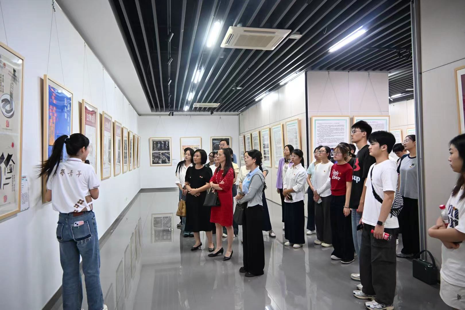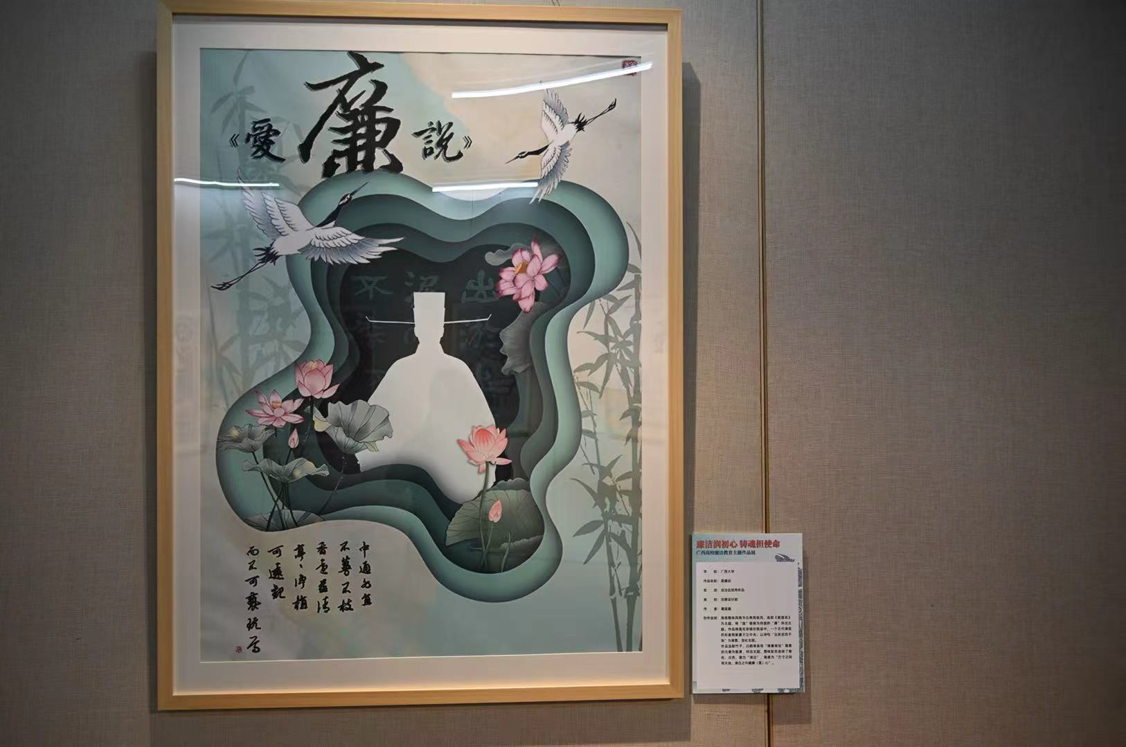 活动首站,党员来到广西艺术学院南湖校区,参观“广西高校廉洁教育主题作品展”。